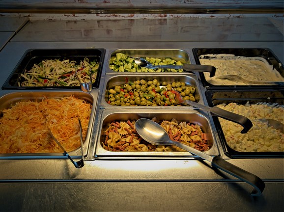 Kaikkiin salaatteihin sisältyy salaatti, tomaatti, kurkku oliiviöljy ja salaattikastike.